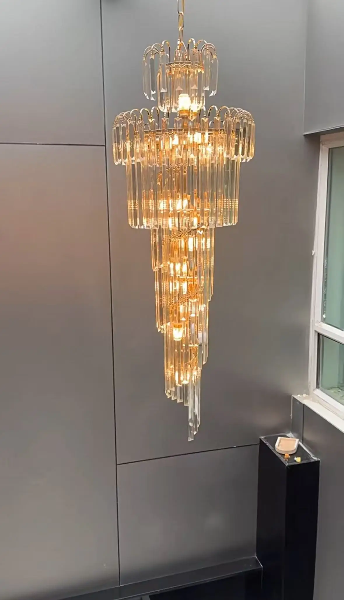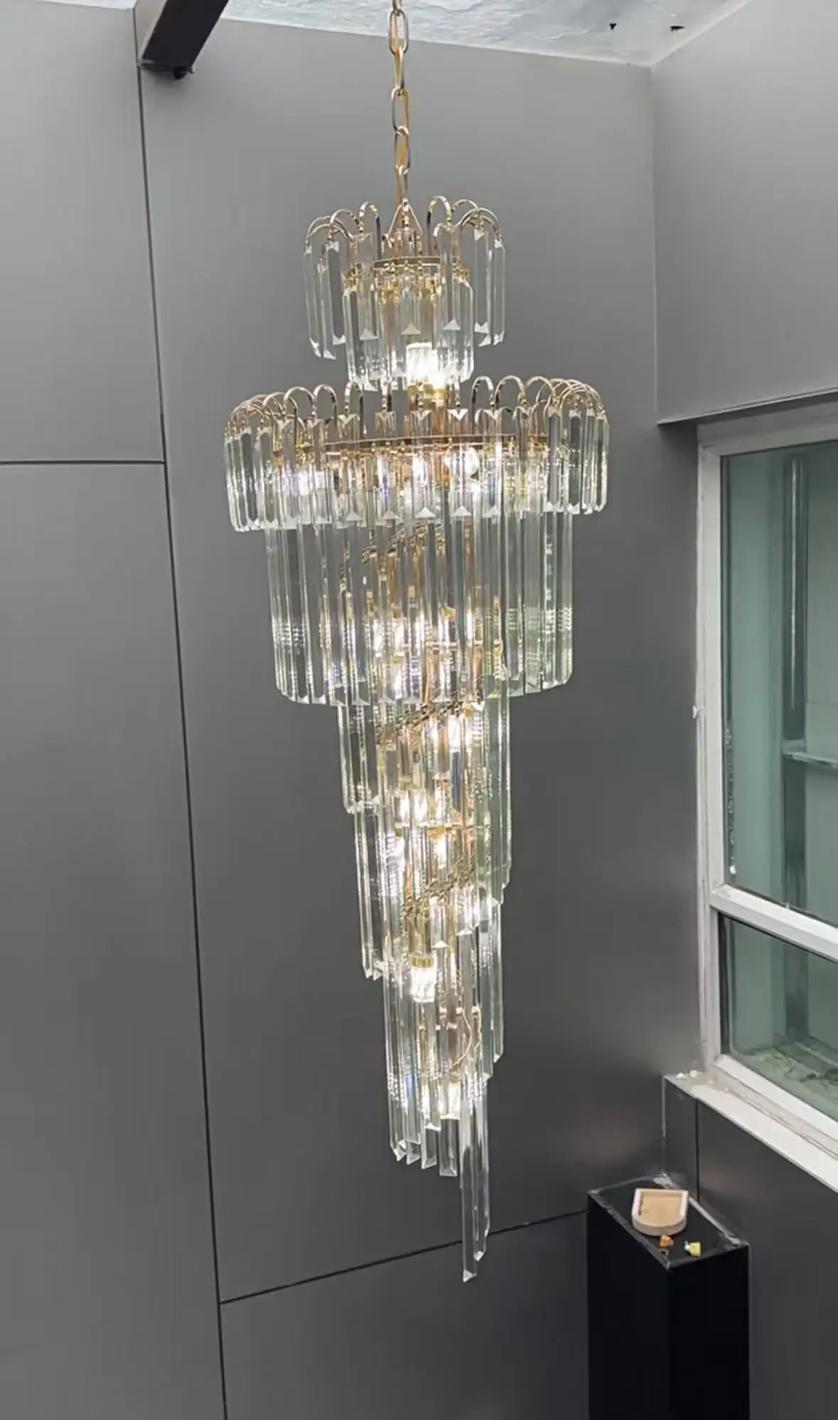 Luxury staircase crystal chandelier is a stunning and opulent lighting fixture that exudes elegance and grandeur, making it a perfect centerpiece for grand staircases and entryways in luxurious homes and mansions. This type of chandelier is characterized by its large size, cascading tiers of high-quality crystals, and intricate designs that showcase craftsmanship and sophistication.