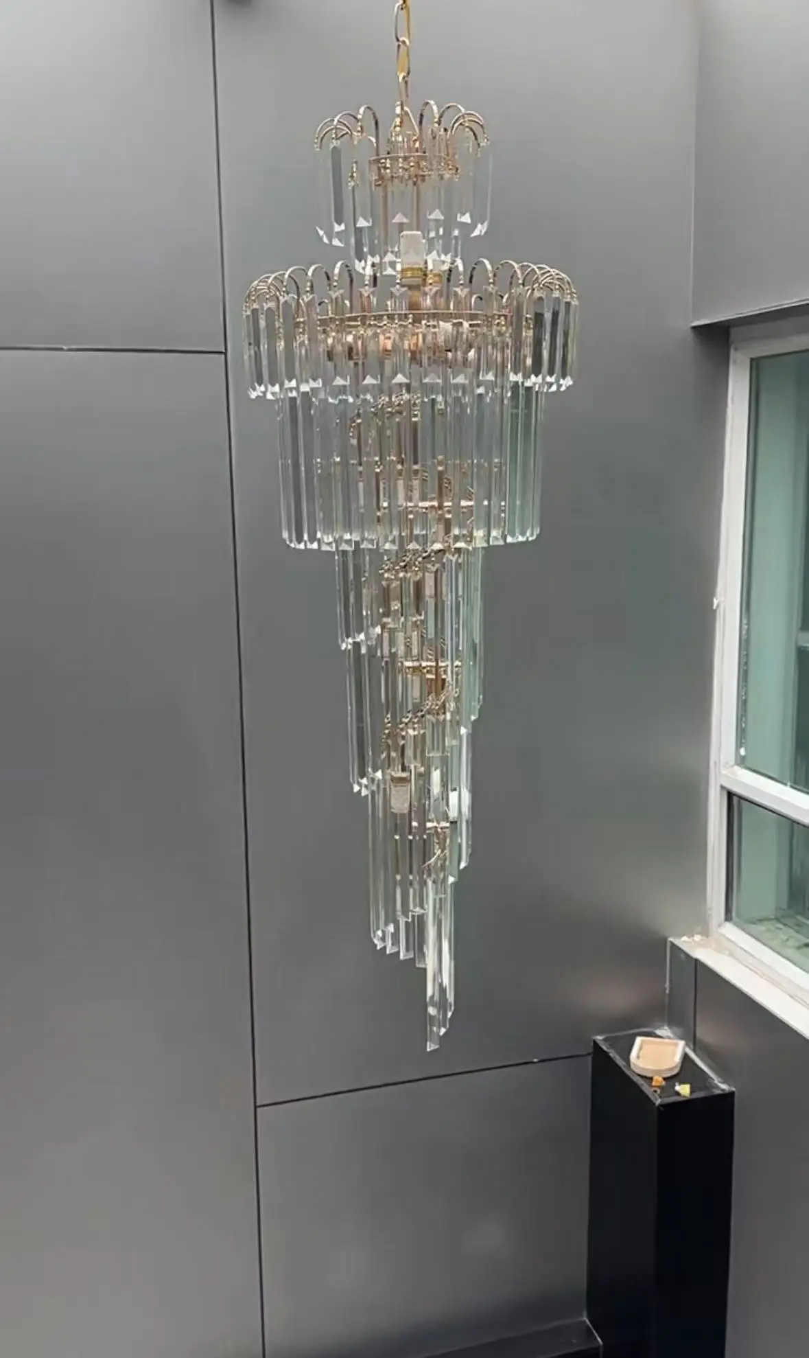 The frame of a luxury staircase crystal chandelier is typically crafted from high-quality metals, ensuring durability and strength to support the weight of the crystals. The crystals are carefully selected for their clarity, brilliance, and faceting, crystals sparkle and refract light, creating a mesmerizing display of brilliance that fills the space with an enchanting ambiance.