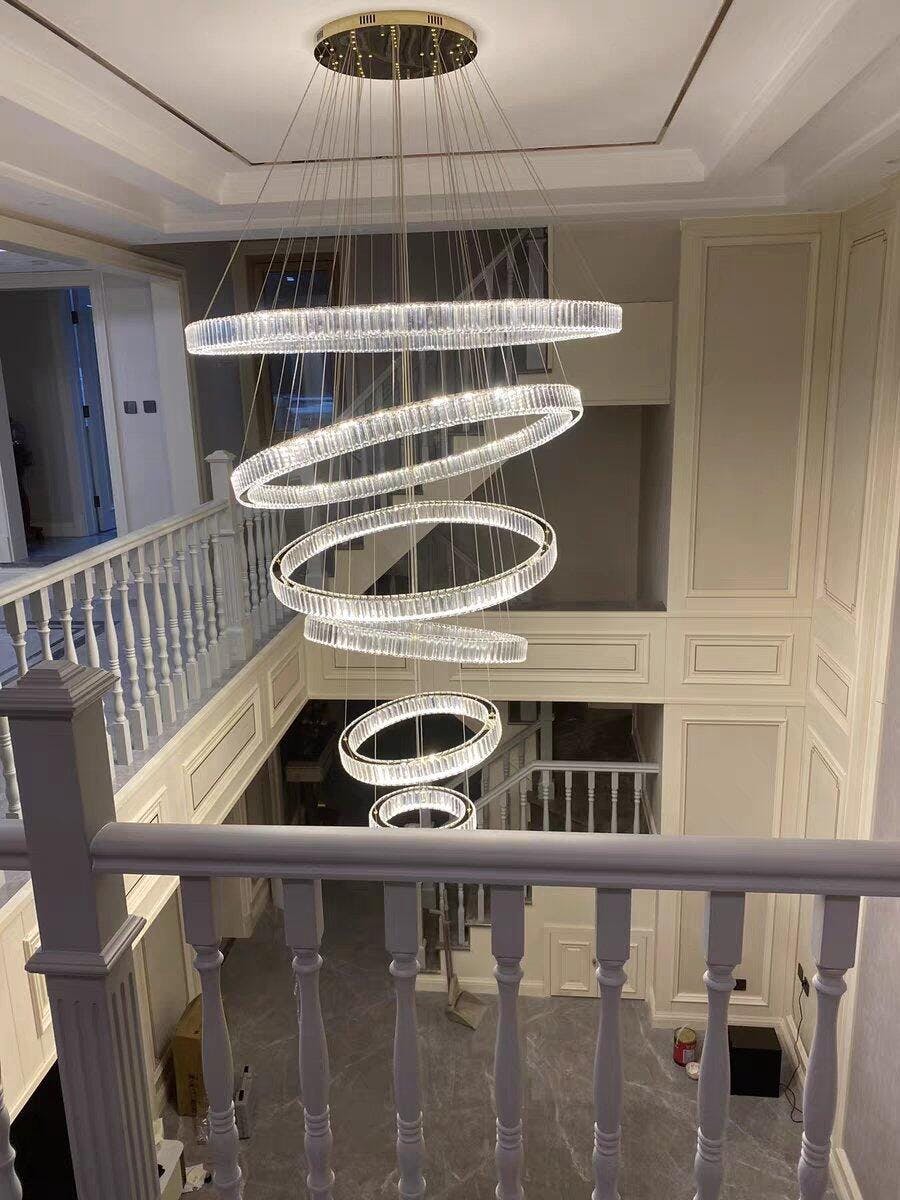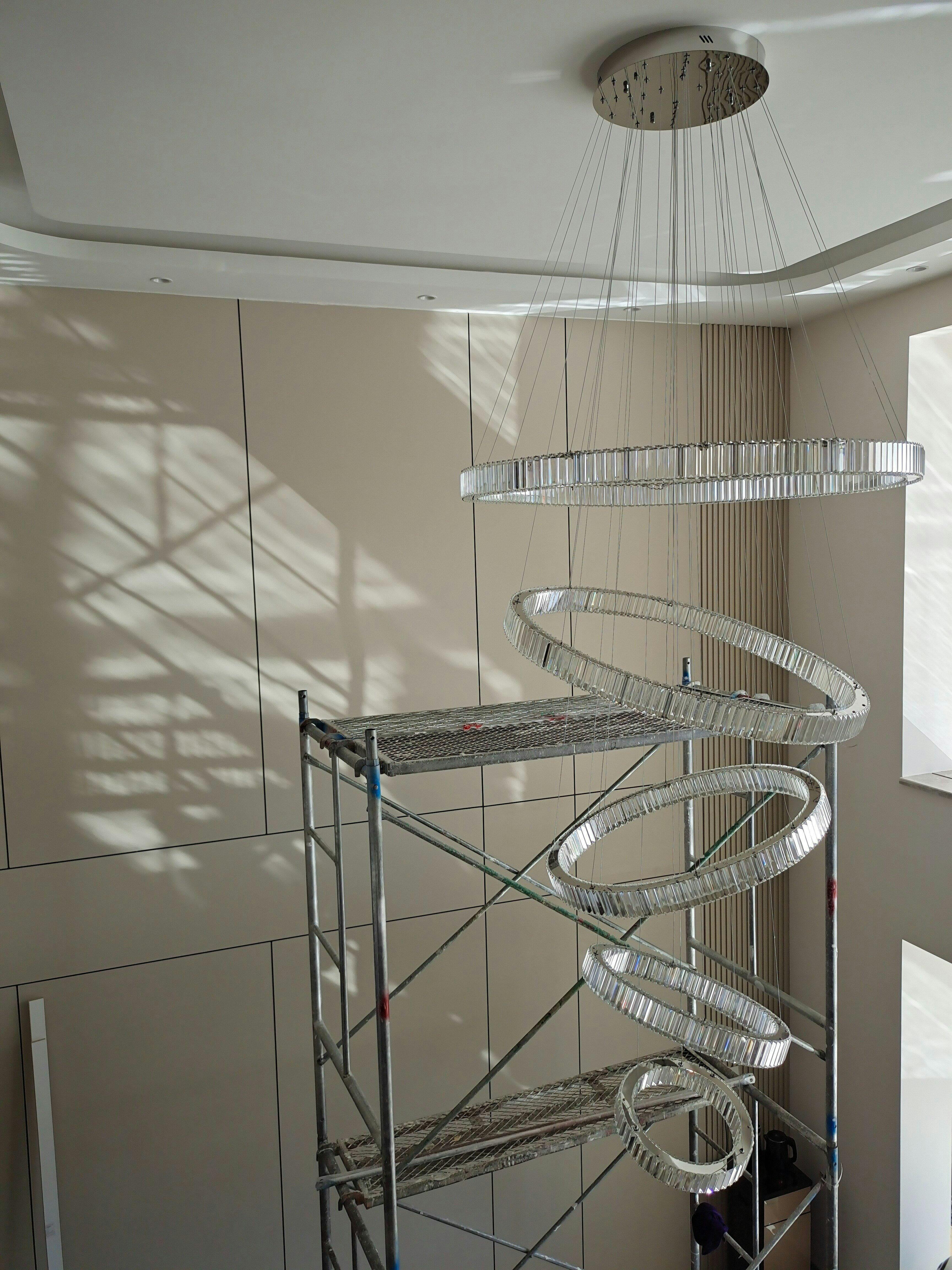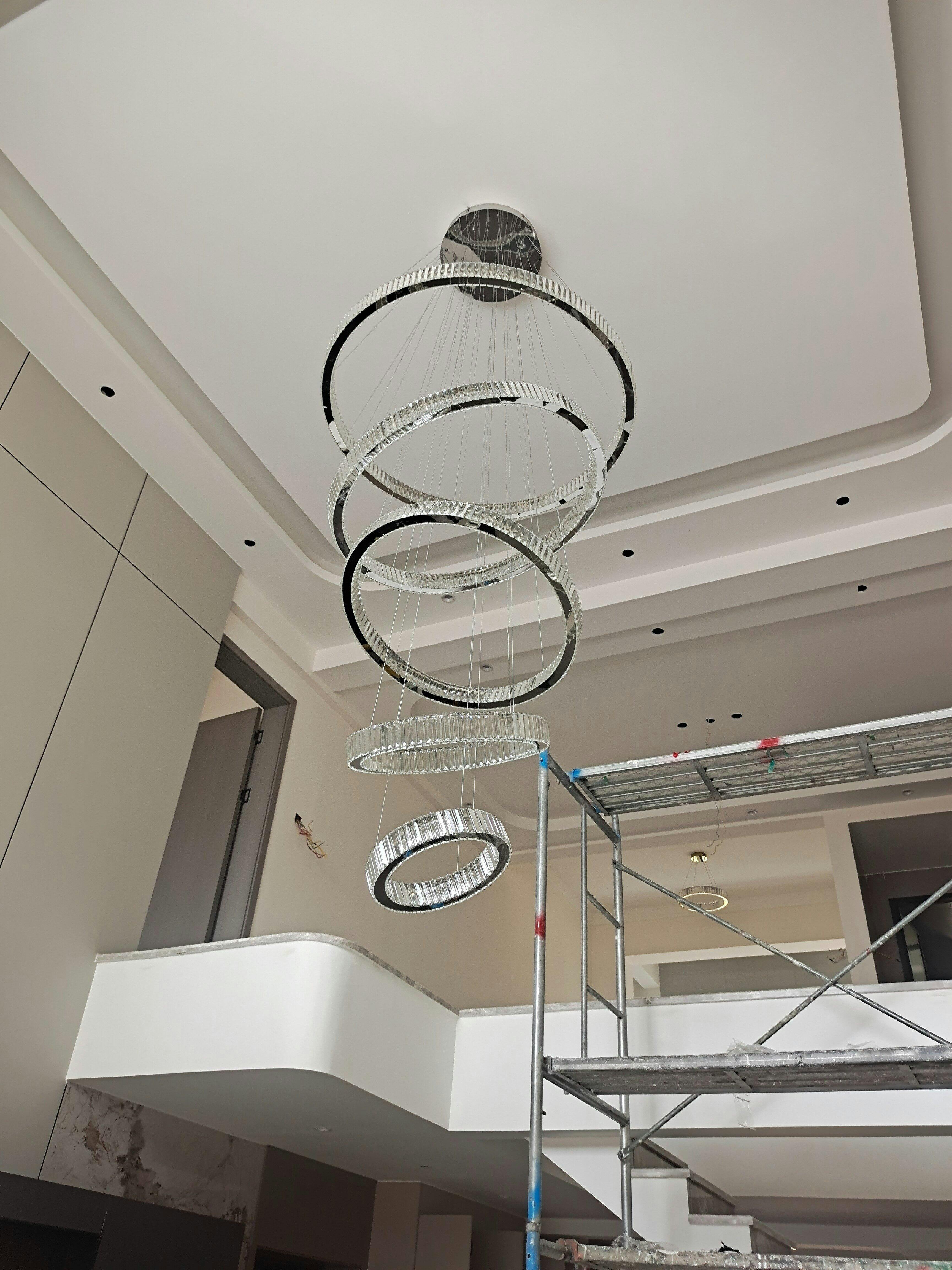 Multi-layered round rings, stainless steel lamp body with crystal.