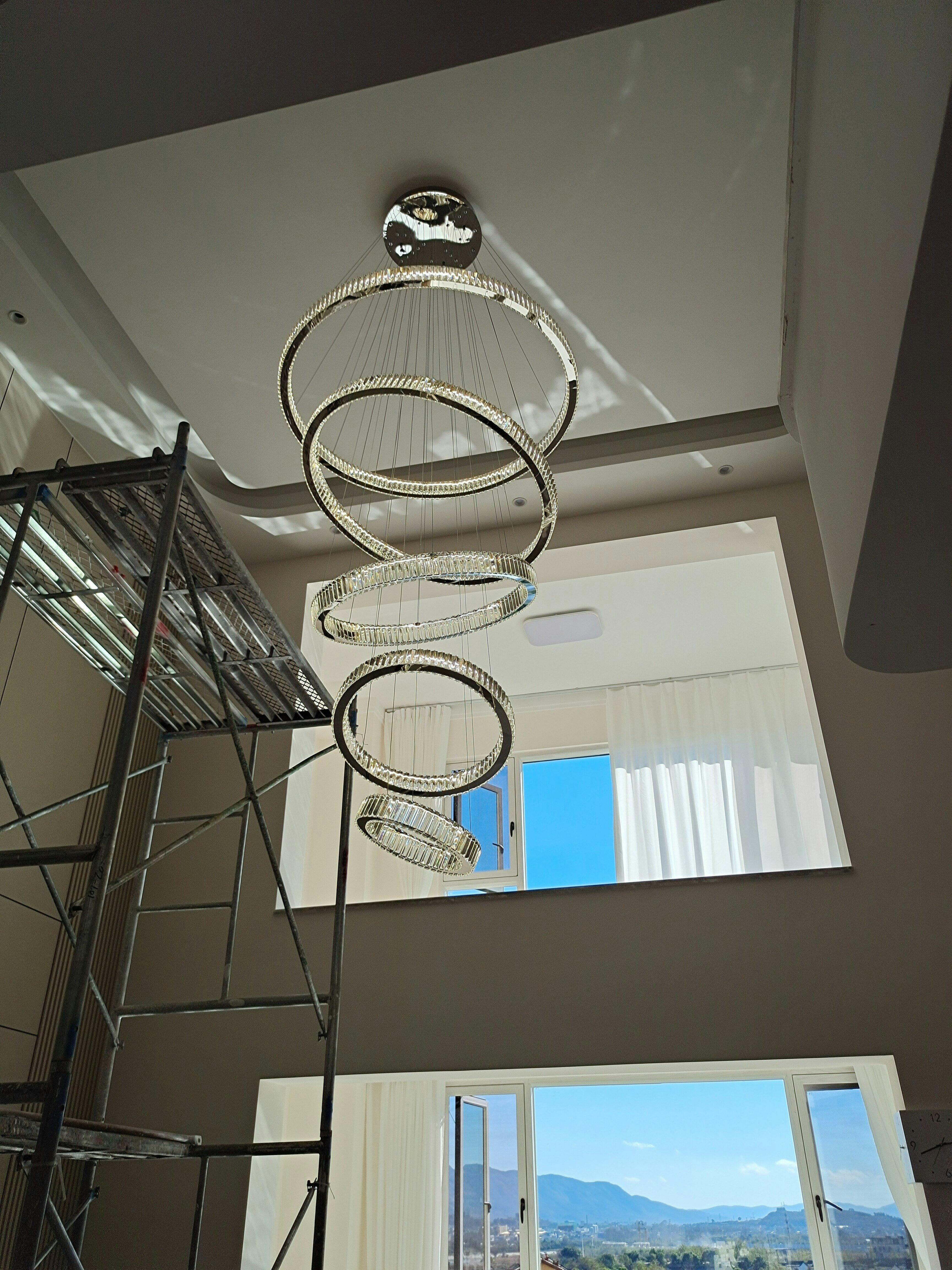 Large-Rings Living Room Crystal Light Fixture With Dimmable
