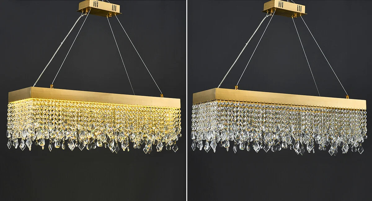 Gorgeous for living rooms, dining rooms, and bedrooms, this rectangular raindrop crystal pendant light is adjustable in size and color. It’s suitable for installation on sloping roofs, adding adaptability to your installation choices.